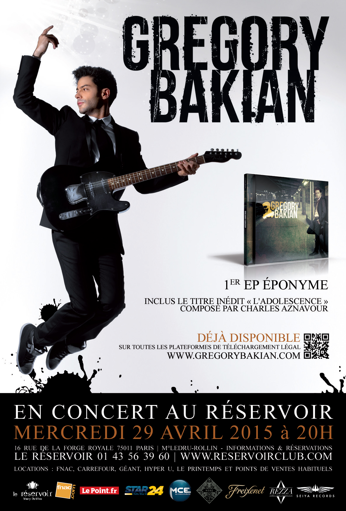 Grégory Bakian, en Showcase exceptionnel, mercredi 29 avril 2015 au Réservoir à Paris. Places VIP disponibles (quantité limitées)